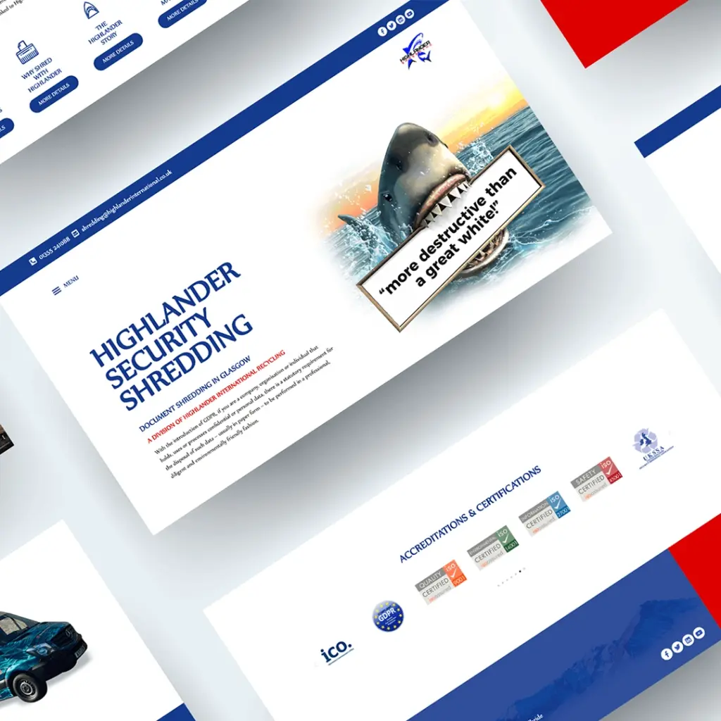 Having previously developed websites for Highlander International Recycling and Highlander Security Shredding, we approached the Highlander Clan with a new re-design concept of their current shredding website to make it more accessible, user-friendly, visually appealing & capable of ranking higher on Google search results.