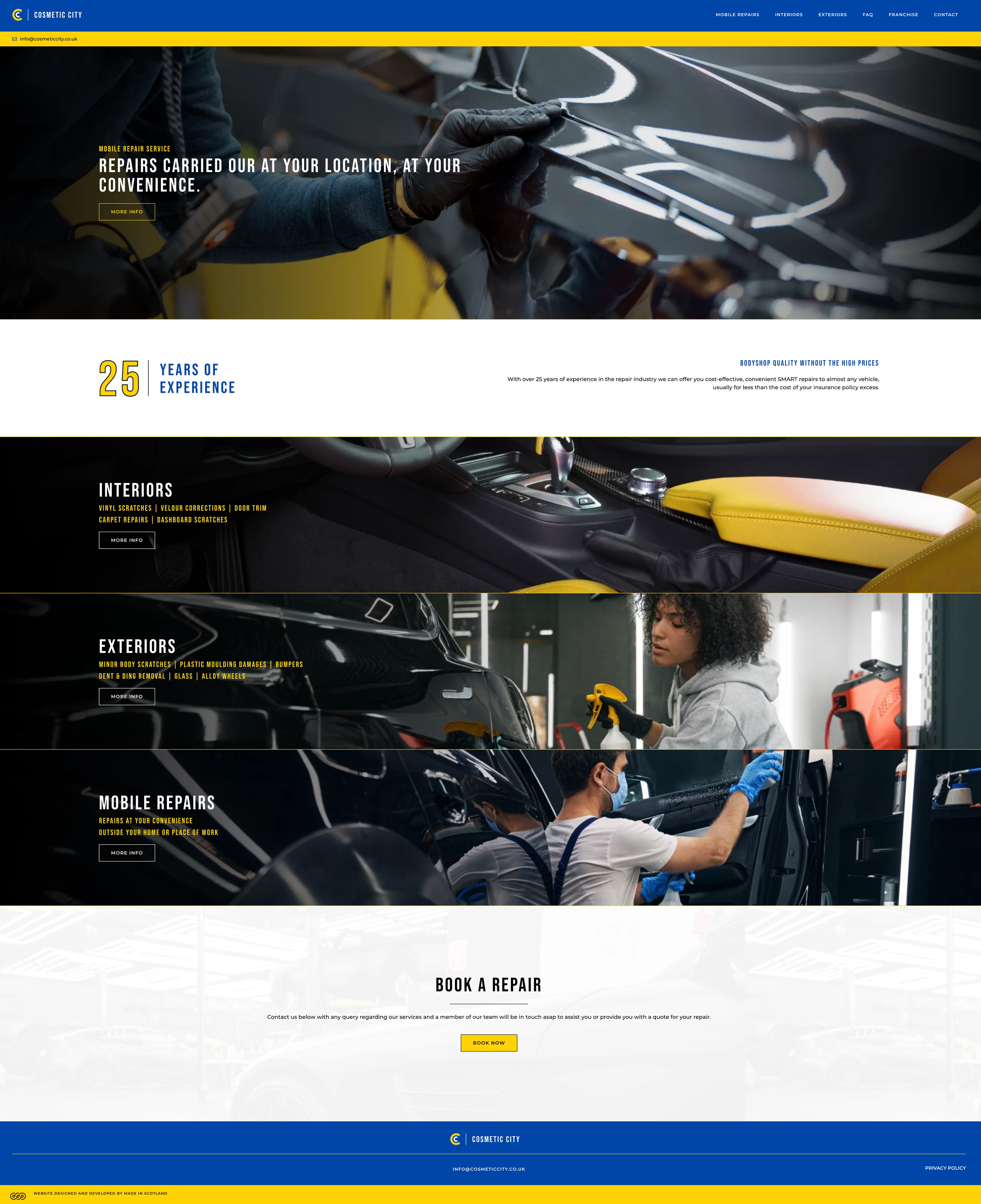 In addition to the branding, the website features high-quality professional photography that showcases the exclusive services offered by Cosmetic City to both domestic and commercial customers. These images, paired with a clean and easy-to-navigate layout, help highlight the company’s expertise and commitment to quality, providing an engaging experience for potential clients. The result is a polished, professional platform that reflects the luxury car detailing experience Cosmetic City offers.