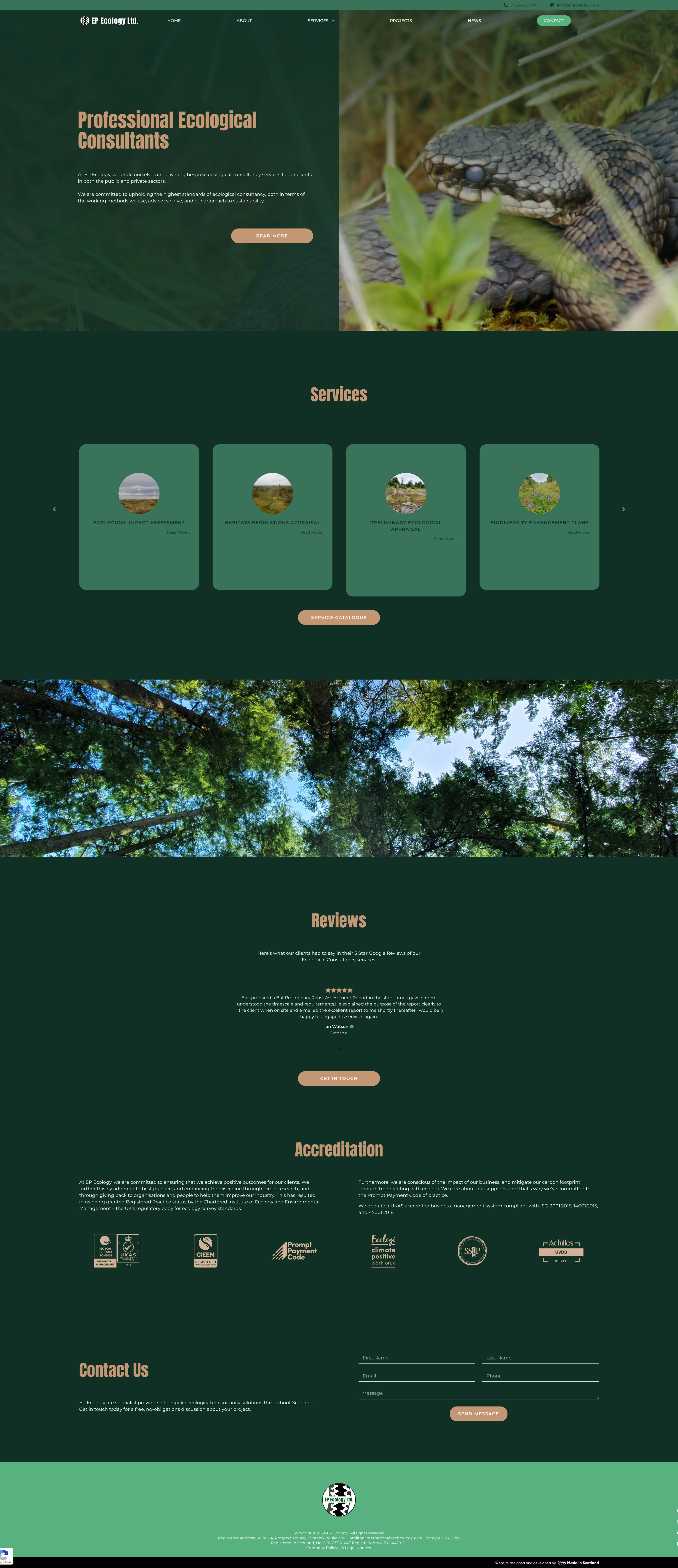 We designed a custom WordPress website for EP Ecology, aligning it with their environmental focus through a natural color scheme and incorporating stunning wildlife photography from their surveys. The site not only reflects their branding but also showcases their services, with a user-friendly CMS for easy content management.