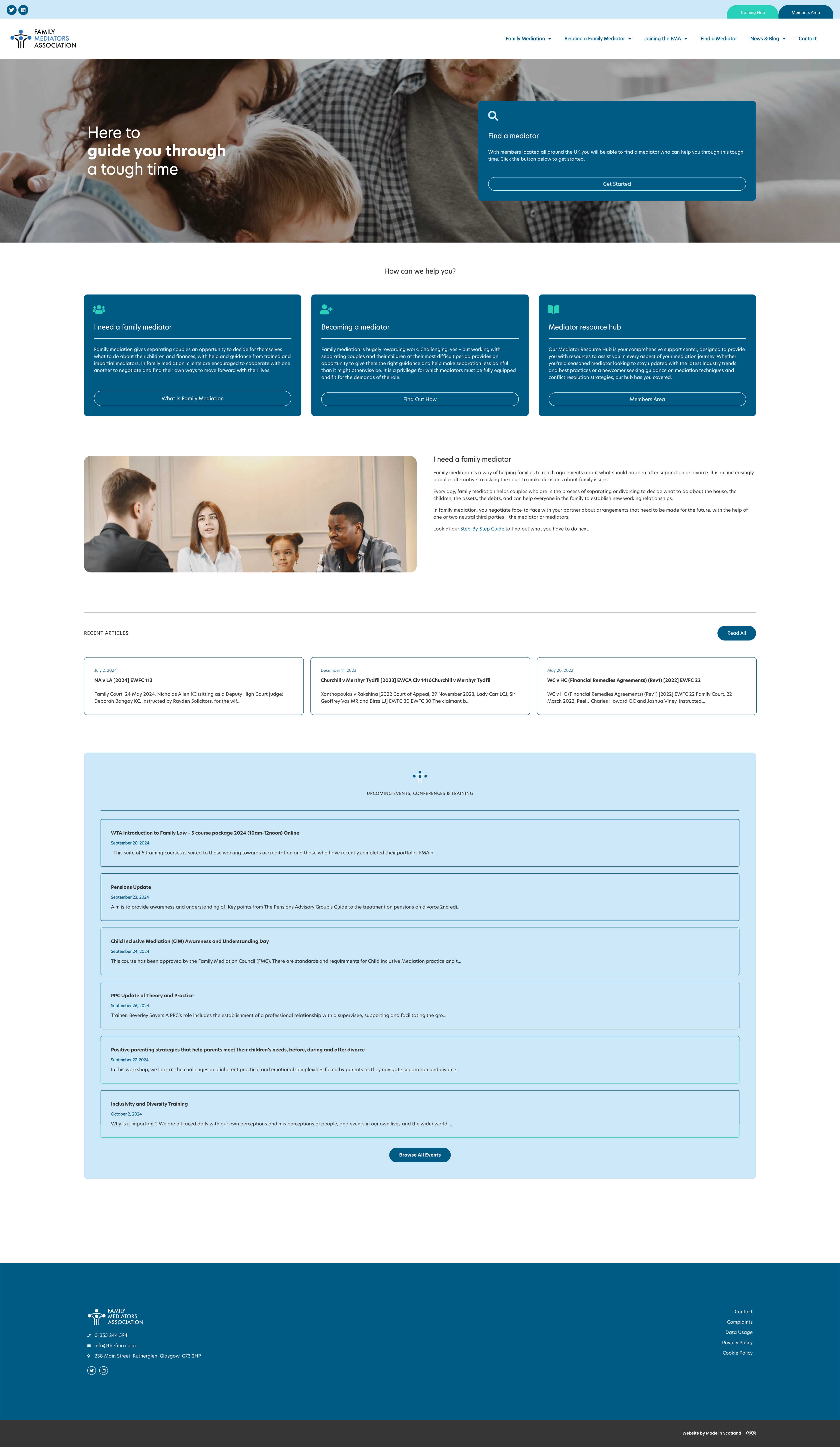 We developed a modern, user-friendly website for the Family Mediators Association (FMA), incorporating advanced member search and filtering features. The site allows both the FMA team and members to easily update and manage content, supported by training sessions for smooth post-launch management.