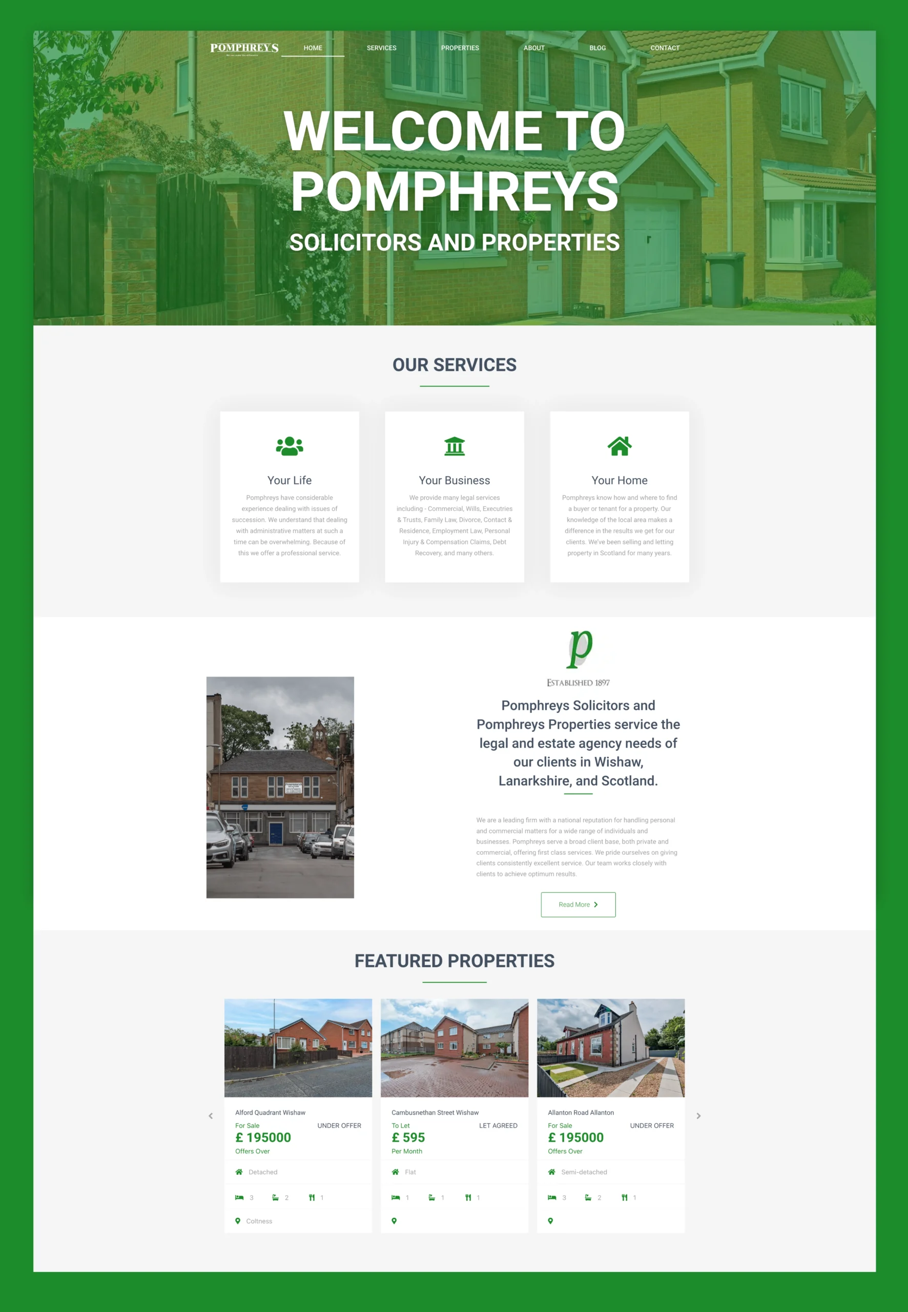 Pomphreys Law have been servicing the needs of legal and property law in Wishaw, North Lanarkshire since 1897. They are a leading firm with a national reputation for handling personal and commercial matters for a wide range of individuals and businesses. Pomphreys serve a broad client base, both private and commercial, offering first class services. They pride themselves on giving clients consistently excellent service. Our team works closely with clients to achieve optimum results.