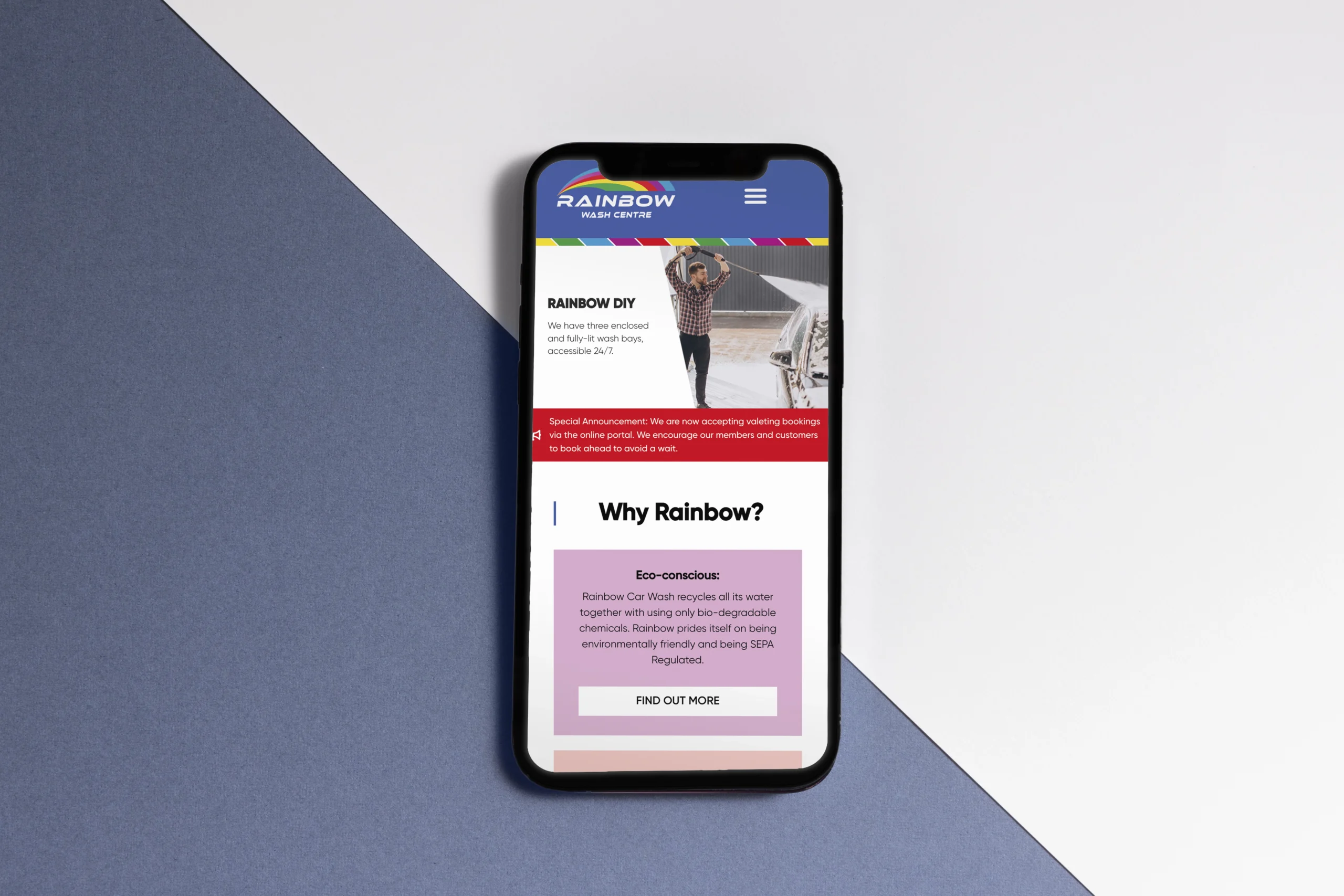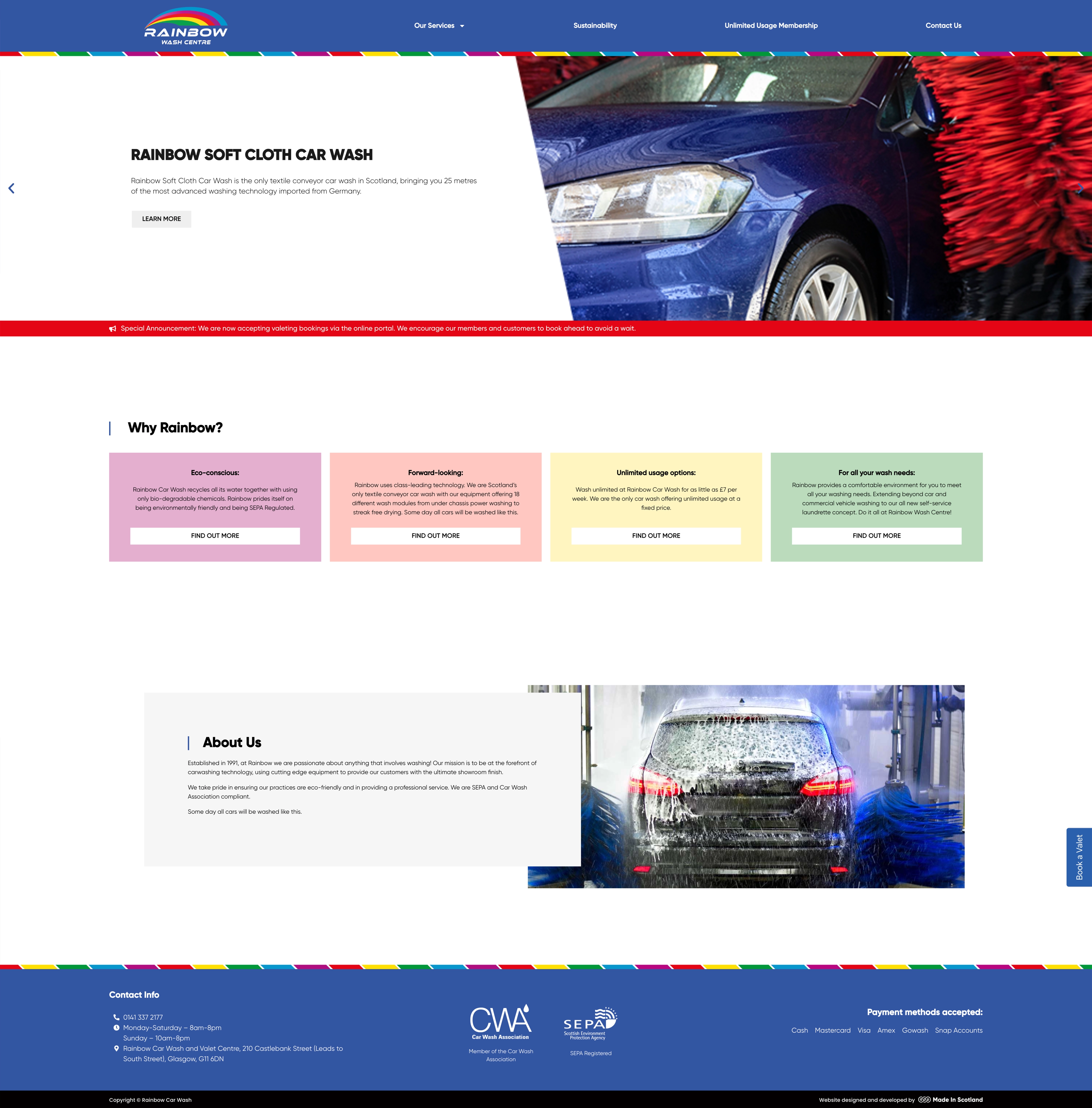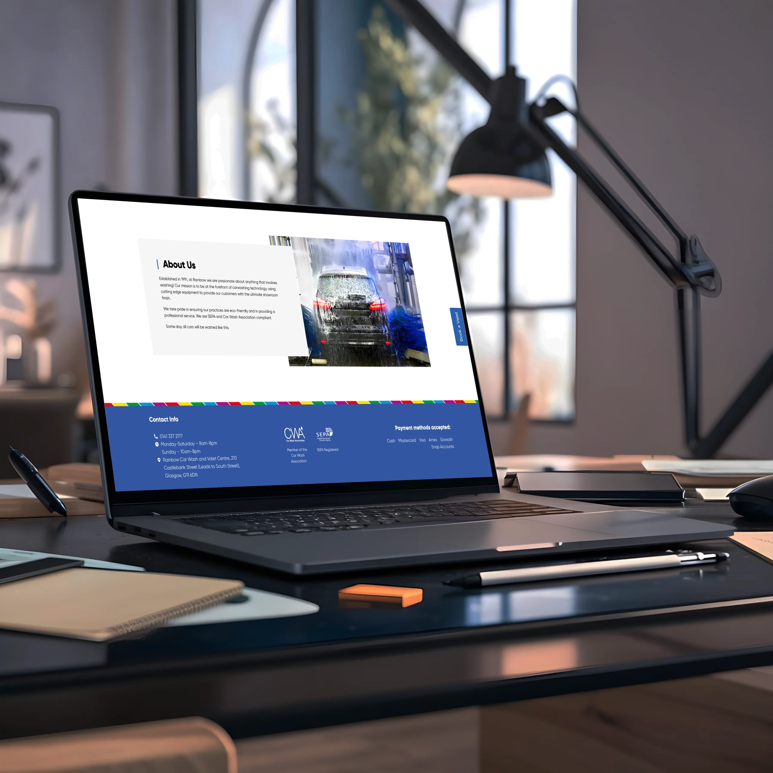 Rainbow Car Wash, a well-established business offering both commercial and domestic car cleaning services, partnered with us to create a custom website that reflects their vibrant branding and enhances their digital presence. The goal was to design a website that would seamlessly mirror the color schemes and energetic feel of their physical car wash while providing a user-friendly experience for visitors. We developed a clean, visually appealing layout that not only highlights their services but also stays true to the lively aesthetic that defines Rainbow Car Wash’s brand.