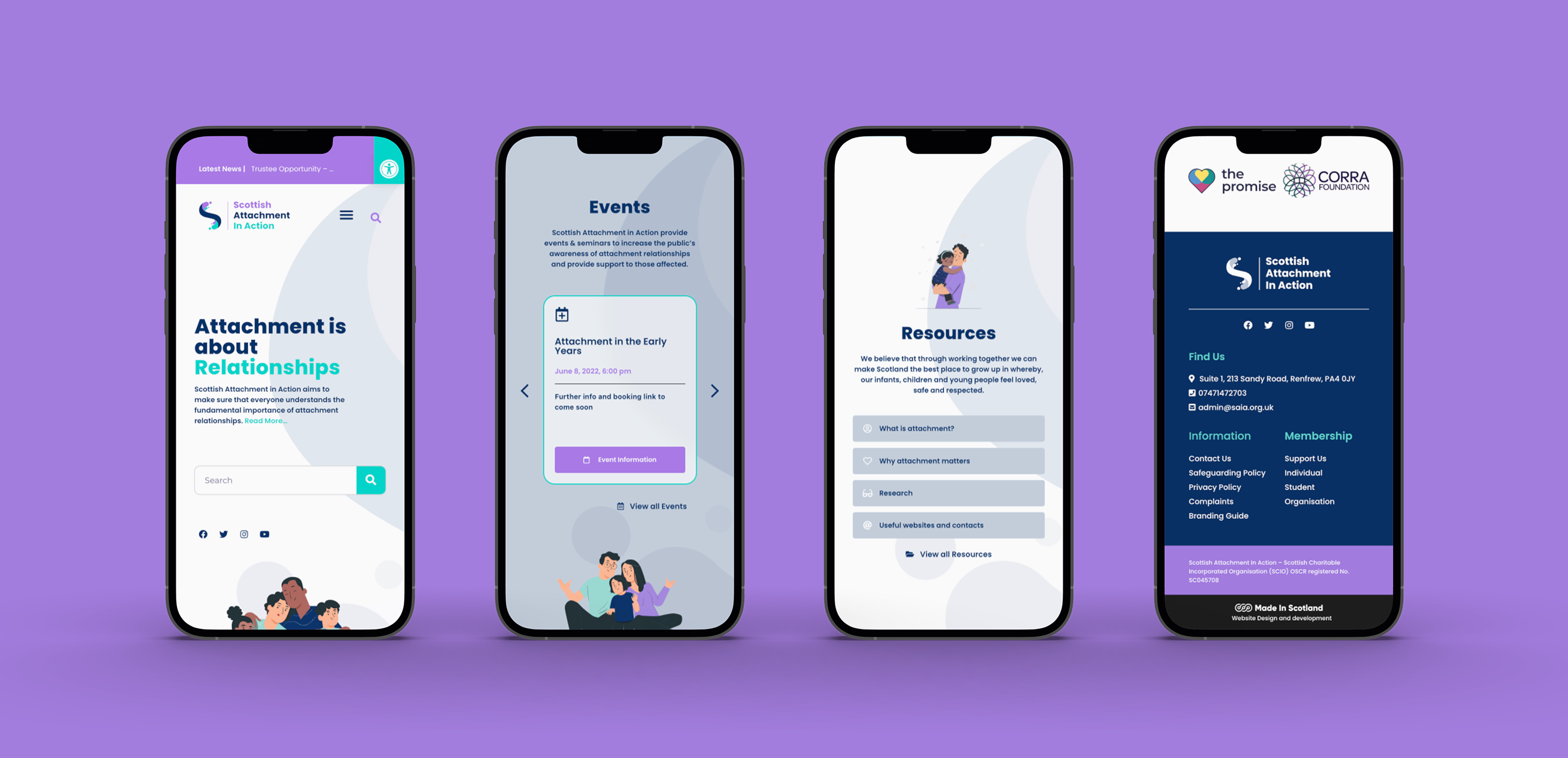 Scottish Attachment in Action (SAIA) approached Made in Scotland to develop a new website and digital identity that would accurately reflect the organisation’s values while remaining accessible to everyone. SAIA also wanted to make their large archive of valuable resources more accessible online. To address this, we designed a user-friendly database, enabling the SAIA team to easily update and manage their content. This feature is common in many website projects we work on, as more businesses opt for online storage to create paperless environments and facilitate seamless document access for their teams.