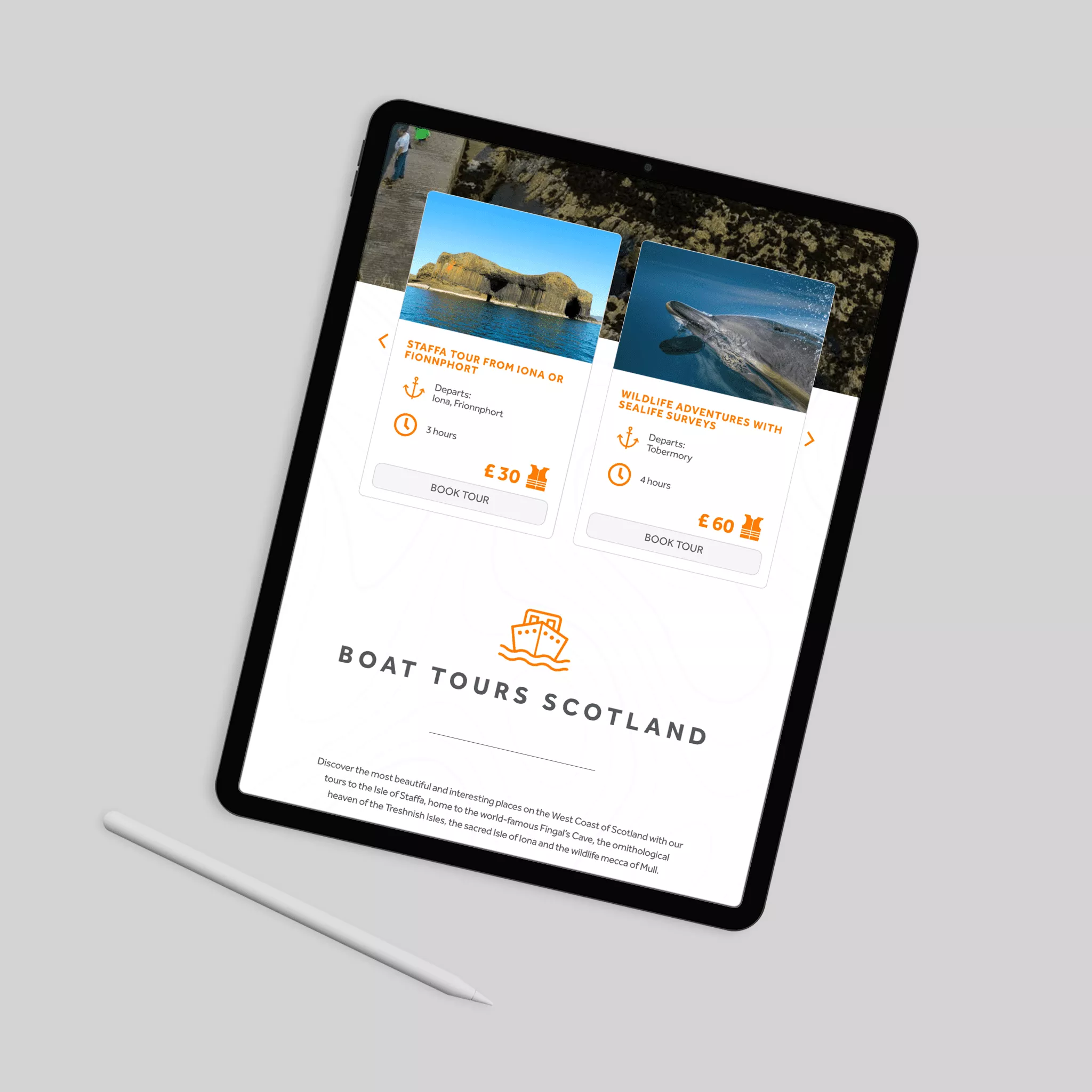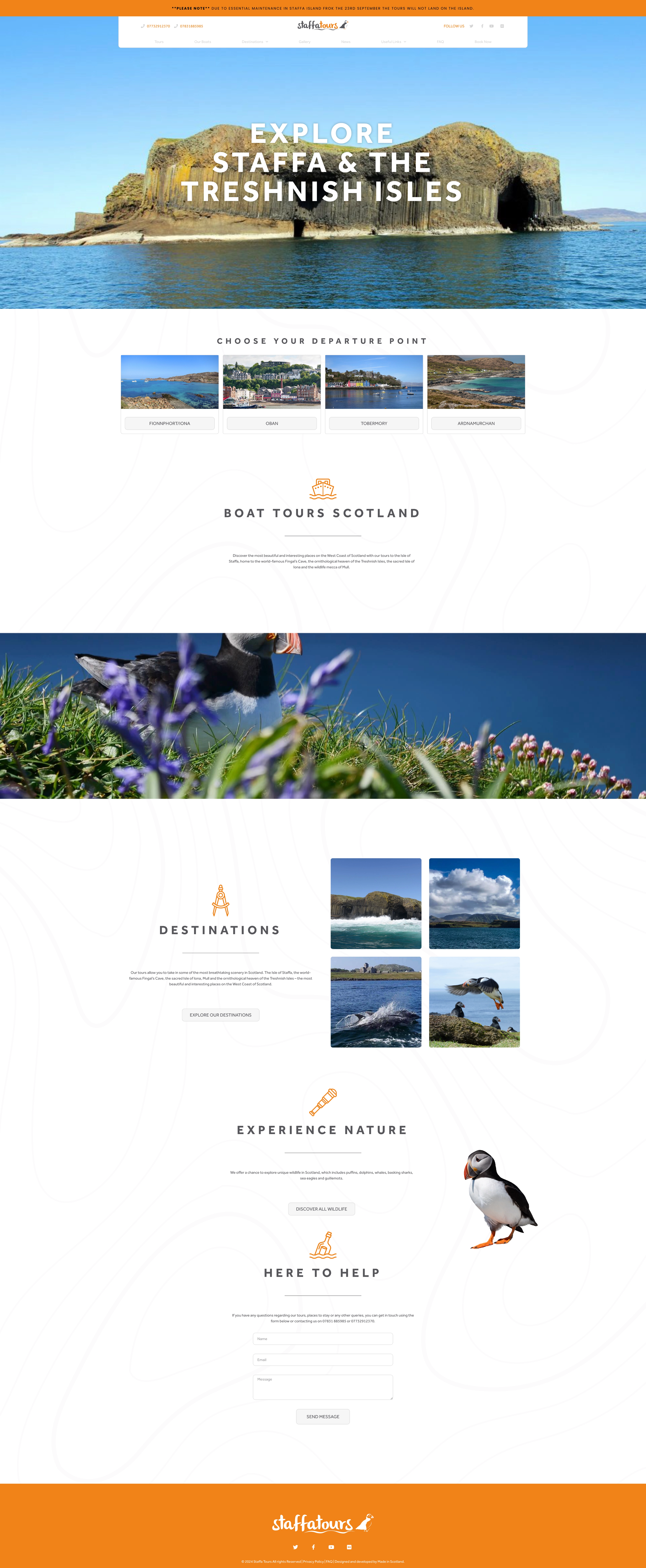 As a leader in boat tours within their region, Staffa Tours needed a website capable of handling bookings, customer inquiries, and regular content updates. We designed several concepts that focused on their breathtaking landscape and wildlife photography, which were presented to the client for feedback. By integrating stunning visuals and functional elements, we were able to create a digital platform that not only captures the essence of their tours but also supports their operational needs, helping Staffa Tours maintain their position as a top choice for boat tours in the area.