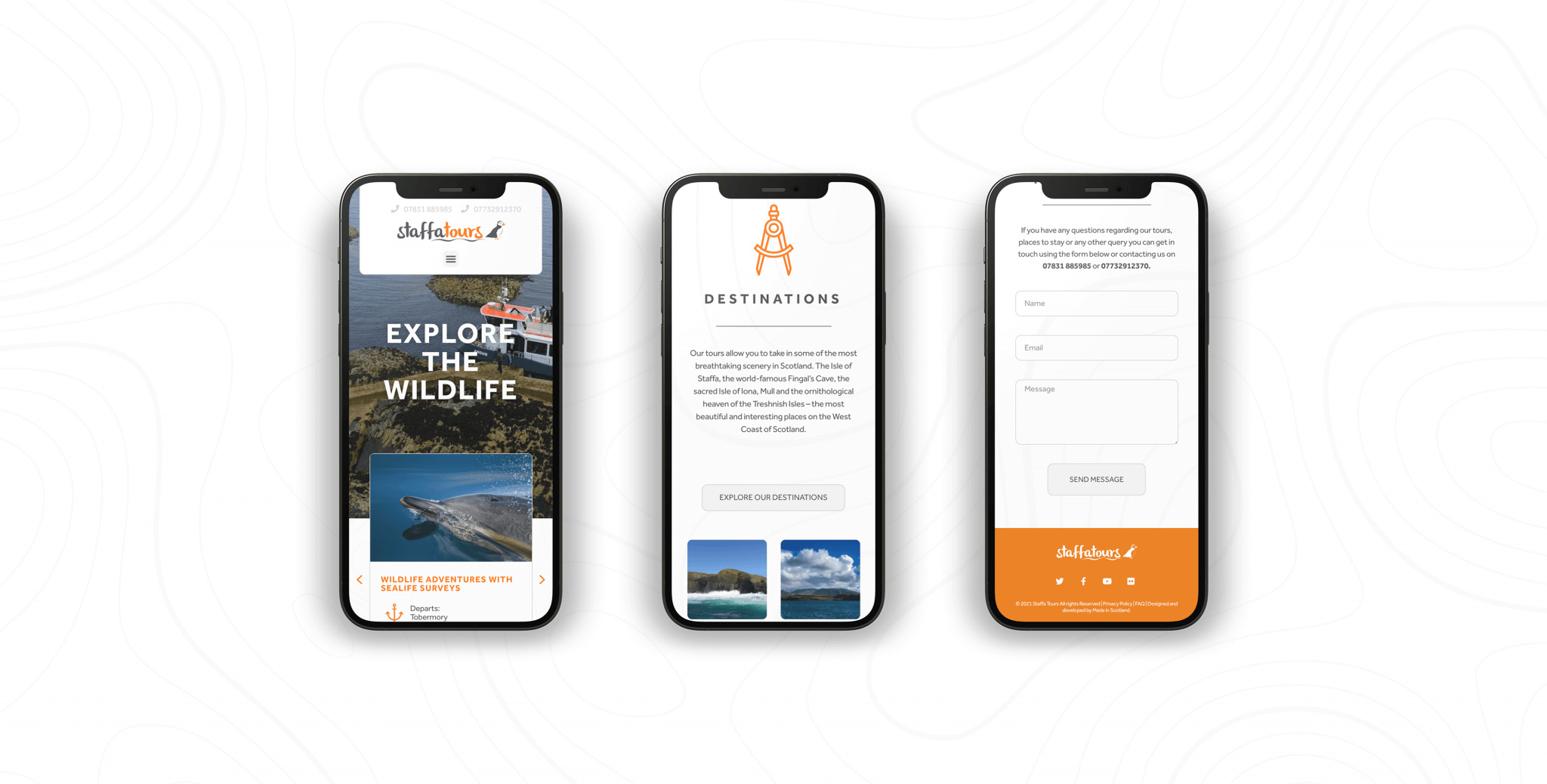 Incorporating design elements like icons is one of our favorite ways to make websites more accessible while adding to the overall aesthetic. For Staffa Tours, we used a set of custom icons throughout the site to visually represent key sections, making it easy for users to skim through the content and quickly find relevant information. These icons complement the minimalist design while improving navigation, ensuring that the site is user-friendly and engaging. Additionally, Staffa Tours actively communicates with their followers through the website’s news section, providing insights into the wildlife and landscapes featured on their tours.