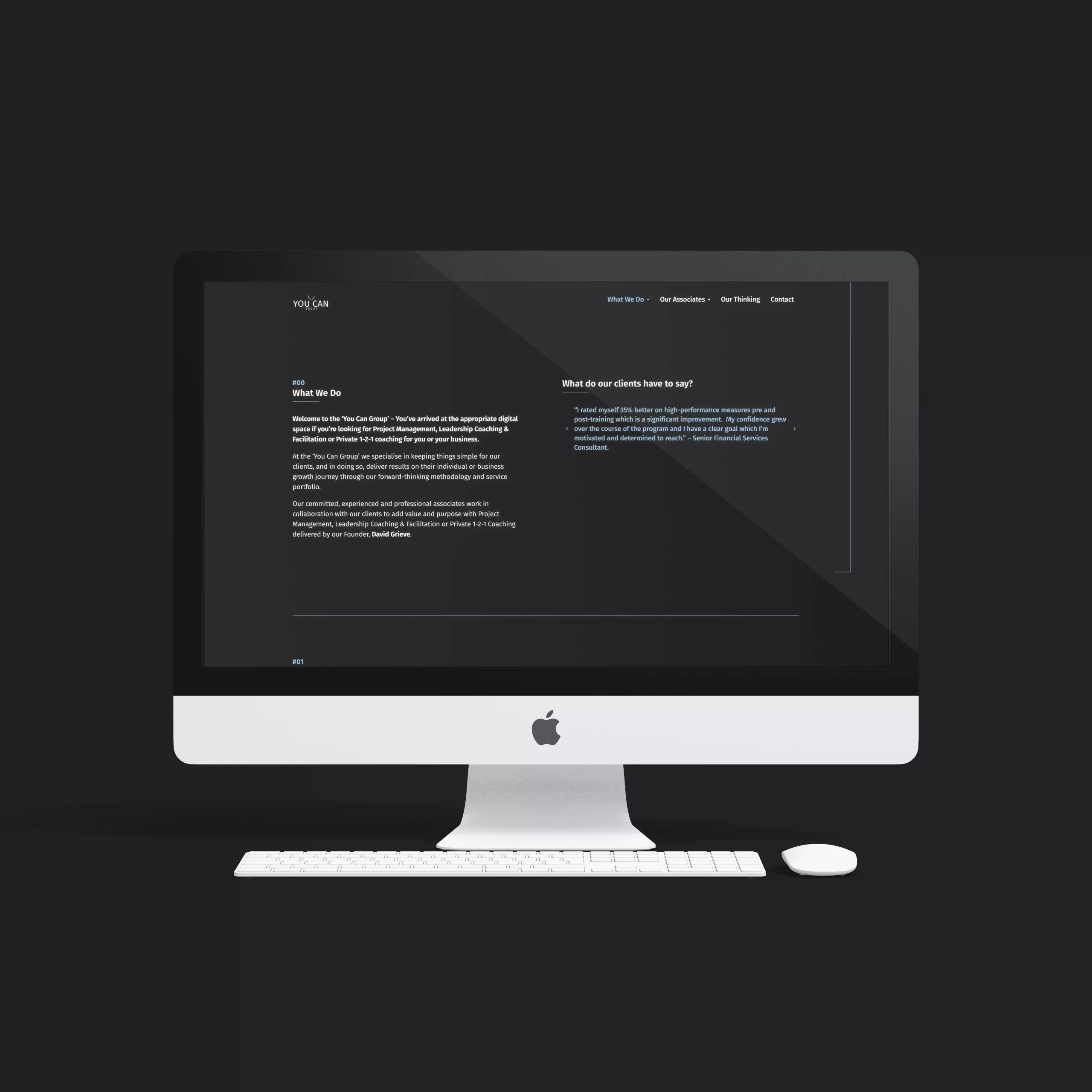 Before launching any website, we always conduct a short training session to educate you and your team on how to manage and update the website content through WordPress and our site builders. These training sessions can be tailored to suit your needs, whether delivered to teams, in one-on-one meetings, or remotely via Teams or Zoom. After virtual discovery sessions with the client, we also gain a clear understanding of their vision and business approach. For one client, we adopted a minimalistic design to reflect their straightforward project management and coaching style. We used a clean layout with bite-sized chunks of content, effective UI design, and avoided images except on profile pages to maintain simplicity and clarity throughout the site.